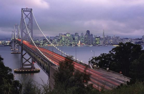 奥克兰海湾大桥位于旧金山湾,1989年在旧金山7.1级大地震中损毁严重,2002年起,当地政府决定在旧桥旁新建一座可抗震的旧金山-奥克兰海湾大桥。业内人士公认为,世界上最昂贵、最美丽、能抗地震、技术含量最高、寿命最长(100年以上)的桥,唯美国旧金山-奥克兰海湾大桥莫属。该大桥建成后可与美国东岸标志性建筑自由女神像媲美,将成为美国西岸的全新地标。从下面的两幅很壮观的照片,可看出此言绝非虚谈。