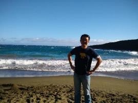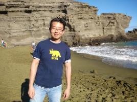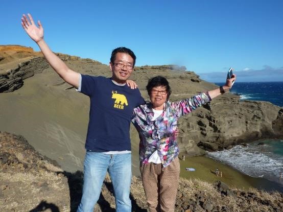 从基拉韦厄火山国家公园出来,我们沿着11号公路向西南方向行驶了大约65千米,便转入一条南北向的简易的乡村公路,一直行驶到公路的尽头(太平洋沿岸),据说那儿是美国领土最南端。小牧找个地方泊车后,我们按照指示牌指示的方向,往东行走了几百米,便看到有几座破旧的民宅孤零零地坐落在海滨。民宅前有几辆老爷车,差不多都是上世纪七十年代的产品,早该淘汰了。有两个胡子拉碴的汉子在修理其中的一辆车。