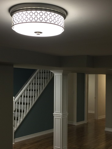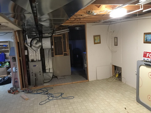 自家地下室,刚买房时地下室就是个毛坯而且没有分隔也没有天花板。自己动手干了一年,拜Youtube为师,把Homedepot当做家,边学边干。包括做框架,上墙抹灰,涂漆,天花板,水电,铺地板,做楼梯。分隔出了水房、机房、二个居室、一个贮藏室、一个小厕所和一个主活动室。由于不打算住人,两个居室都可以另做他用。总体花费6000+ 加币,也就是请人装修的1/5左右。很多木工也都是自己动手做的啦。包括那个佛桌和白色的柱子。