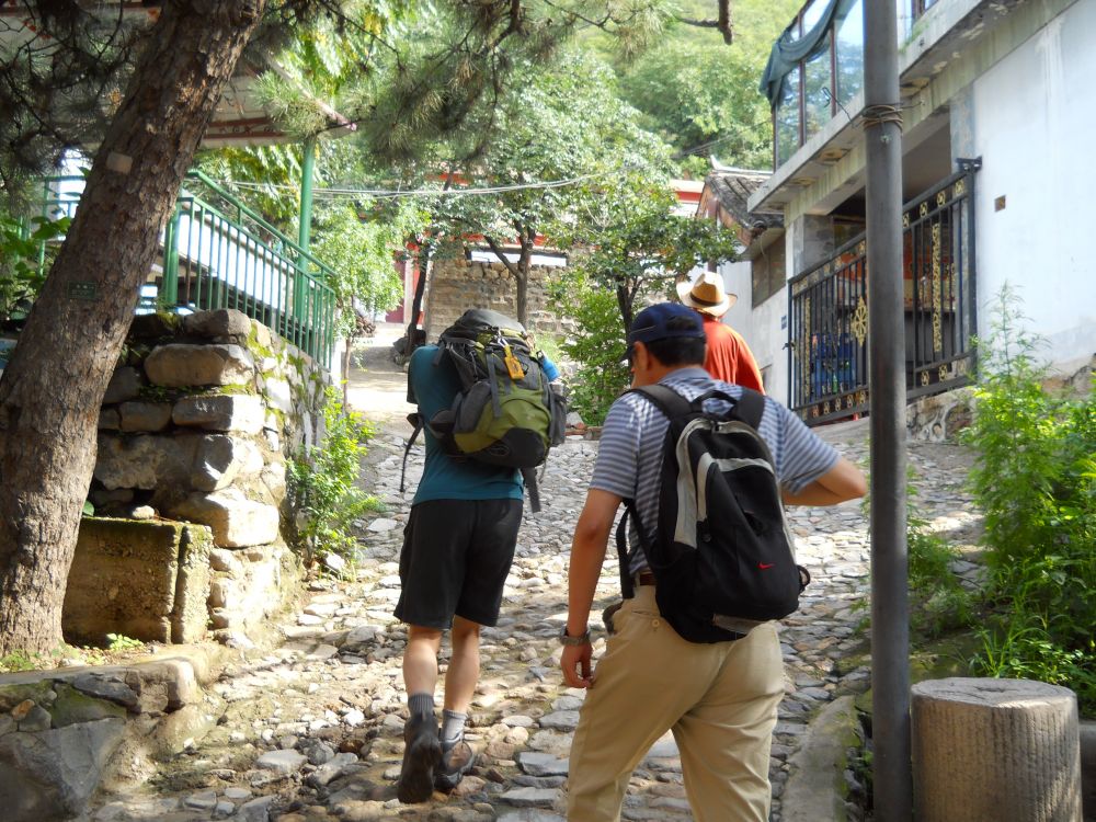 我们再往上攀了一阵子,碰上一队西方游客。带队的一男一女两位是中国人。其中有两位美国女子,年纪稍长的一位自我介绍说她来自俄勒冈的波特兰,现在北京居住。大家对中华民族先辈的创造力惊叹不已。交谈中我们得知,他们是Beijing Hikers Club的成员,每周有定期组织的活动。