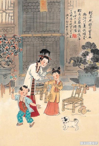阳春三月小桃开,笑语飞过百花台。五彩毛团翻上下,原是双娇踢球来。