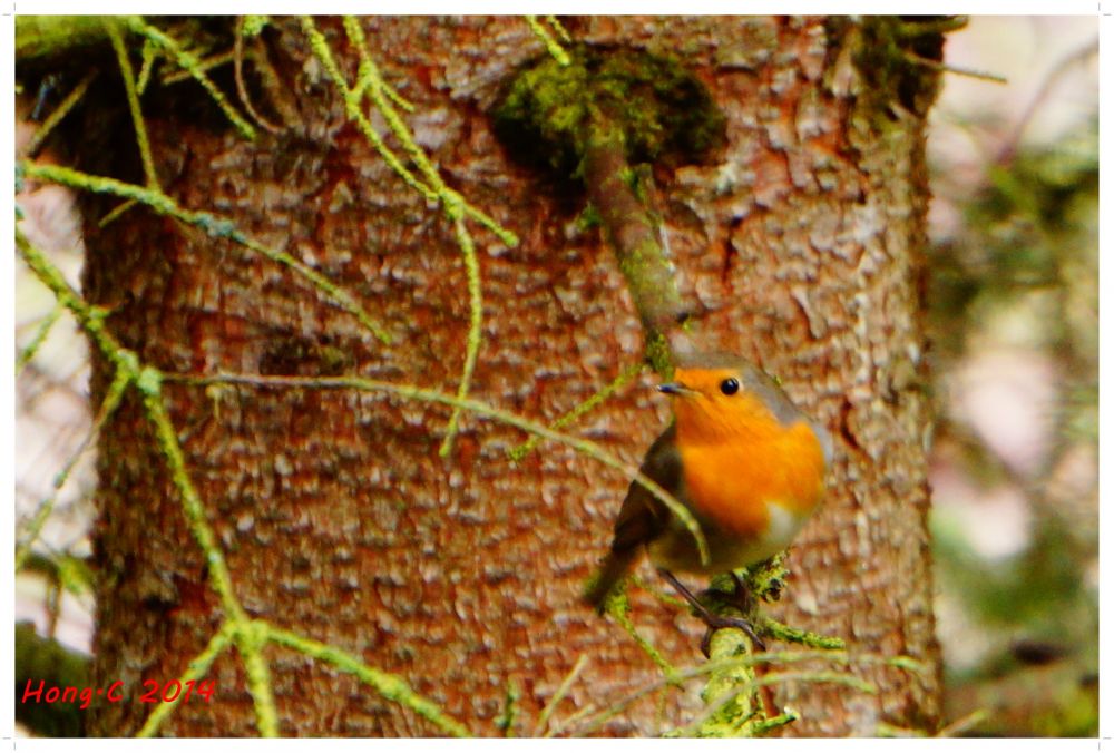 据说欧亚鸲是英国的国鸟,我却在12月里阴冷的德国拍到它。我家窗外有几棵大树,它经常在树上树下活动,我也会扔些超市里买来的鸟食喂它们。