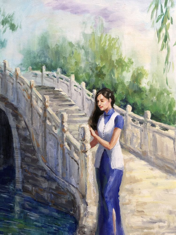 暖阳下 我迎芬芳 是谁家的姑娘 我走在了那座小桥上 你抚琴奏忧伤 桥边歌唱的小姑娘 你眼角在流淌 你说一个人在逞强 一个人念家乡 风华模样 你落落大方 坐在桥上 我听你歌唱 我说桥边姑娘 你的芬芳 我把你放心上 刻在了我心膛 桥边姑娘 你的忧伤 我把你放心房 不想让你流浪