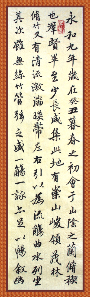 几年前,在先师的书画店里,见他书写的条幅兰亭序,非常敬佩。看着不走。
