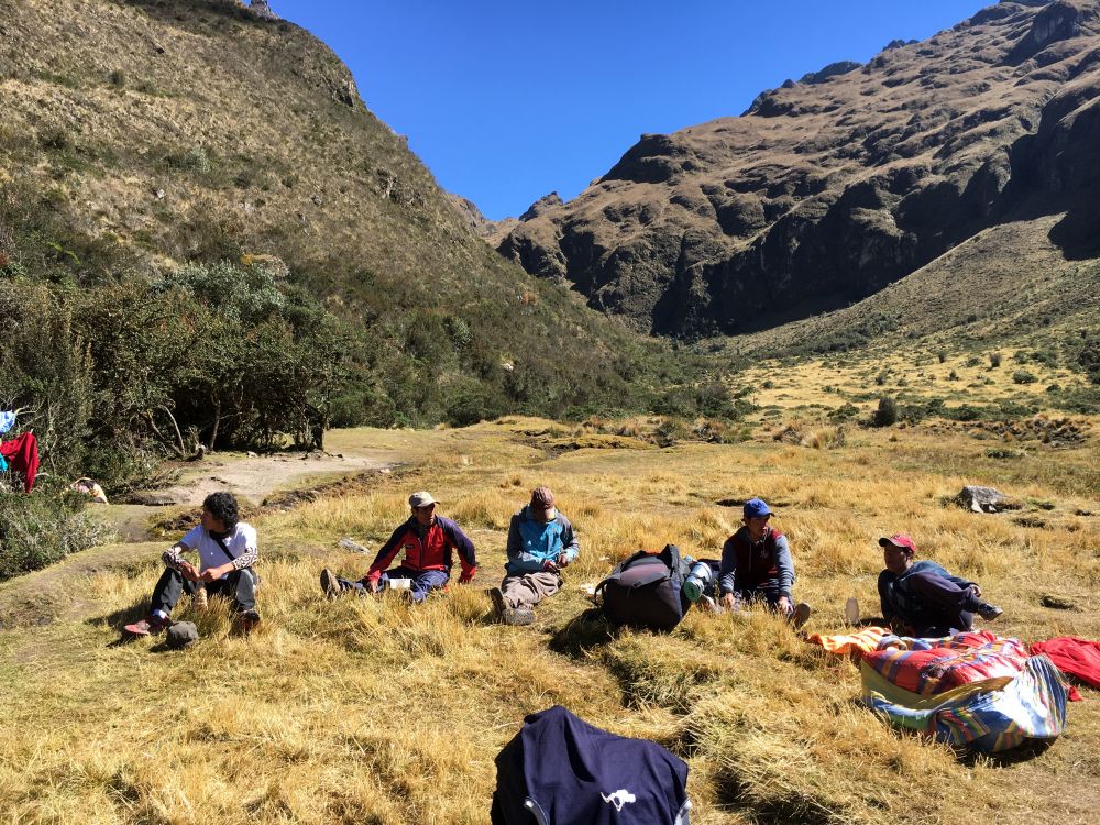图22. 向导和挑夫在Llulluchapampa悠闲自在地休息(Wayllabamba到Dead Woman Pass之间)