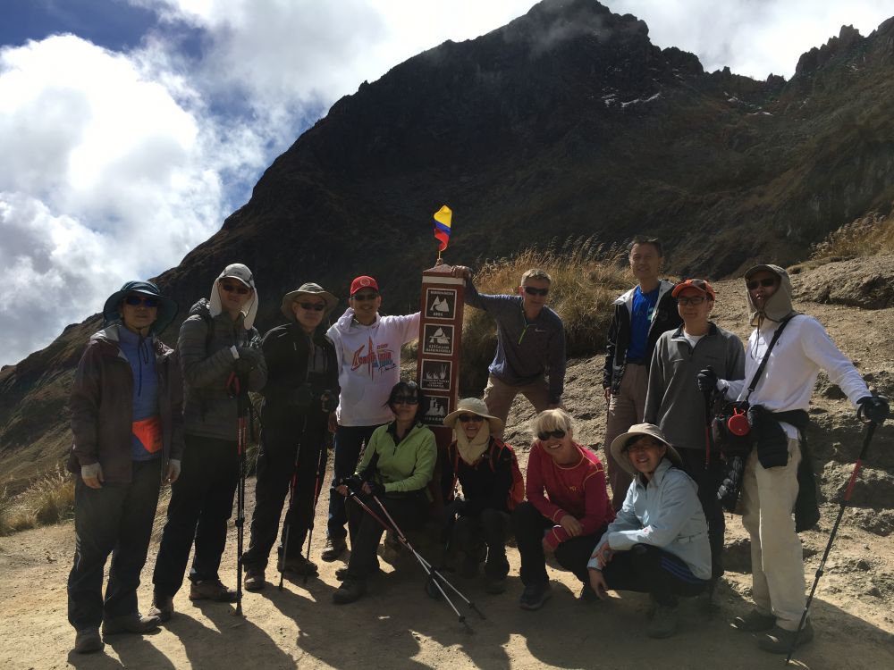 登上Dead Woman Pass山口后,大家都比较兴奋。这段路是对徒步旅行者体能的最大的挑战,是整个印加古道上最困难的部分。如果能够登上Dead Woman Pass山口,前面就没有更大的障碍了。换句话说,如果登上了Dead Woman Pass,你就应该能够走完印加古道全程。