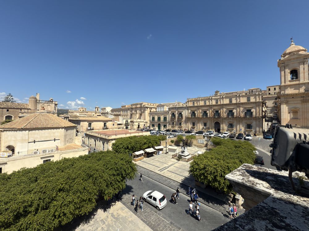 我没有想到的是这个教堂,以及电影《冒险 》和电视剧集《白莲花》中,众多男人在公共空间对女性的围观和凝视这个场景,在中国的年轻人中有一定知名度。我们在大教堂旁边飞无人机时,偶遇一个来自中国的女孩,她一人孤身从中国来诺托就是为了看诺托大教堂和圣弗朗西斯科教堂,用无人机拍摄她在这里漫步行的视频和镜头。