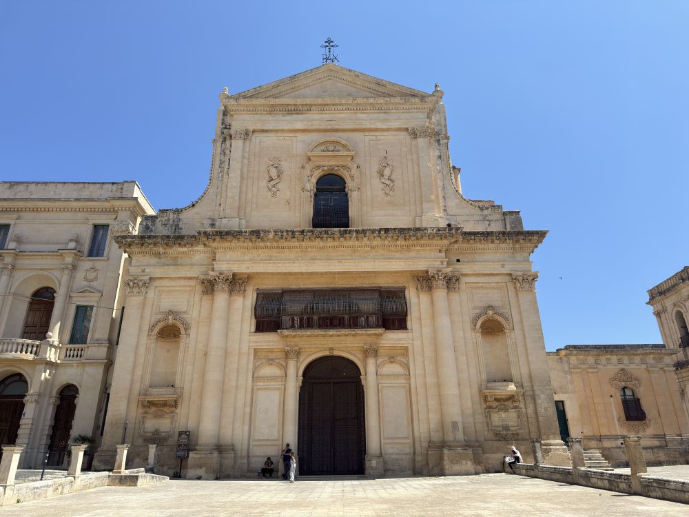 诺托大教堂(Cattedrale di San Nicolò)的全名为圣尼古拉大教堂,它位于诺托历史城区维托里奥·埃马努埃莱大街(Corso Vittorio Emanuele)上。大教堂坐落在一个具有3段式巨型阶梯,之间有平坦的中转平台相接的高台上。西西里巴洛克风格采用这种三段式阶梯来营造庄严,逐层推进的视觉和心理效果。三段式阶梯,和教堂的三扇大门和教堂的三个主立面形成对应和建筑整体的和谐。