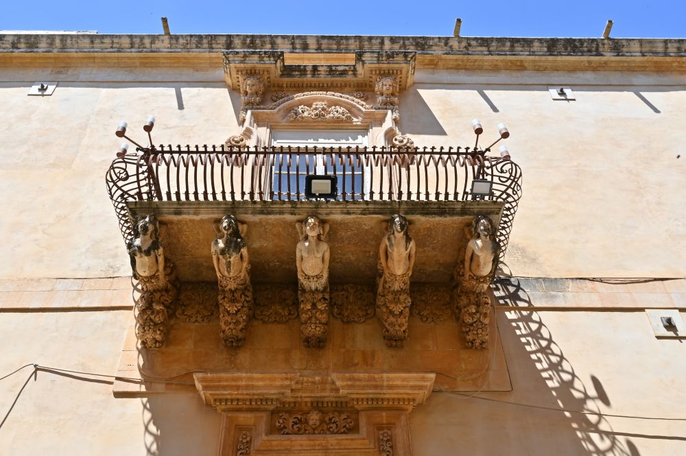 宫殿最著名的是西西里巴洛克风格的六个阳台(balconi),每个阳台下方都装饰着风格各异的怪兽,天使,半人半兽和狮子等雕刻。这些雕刻呈现出夸张的动感,是西西里巴洛克装饰艺术的经典之作。