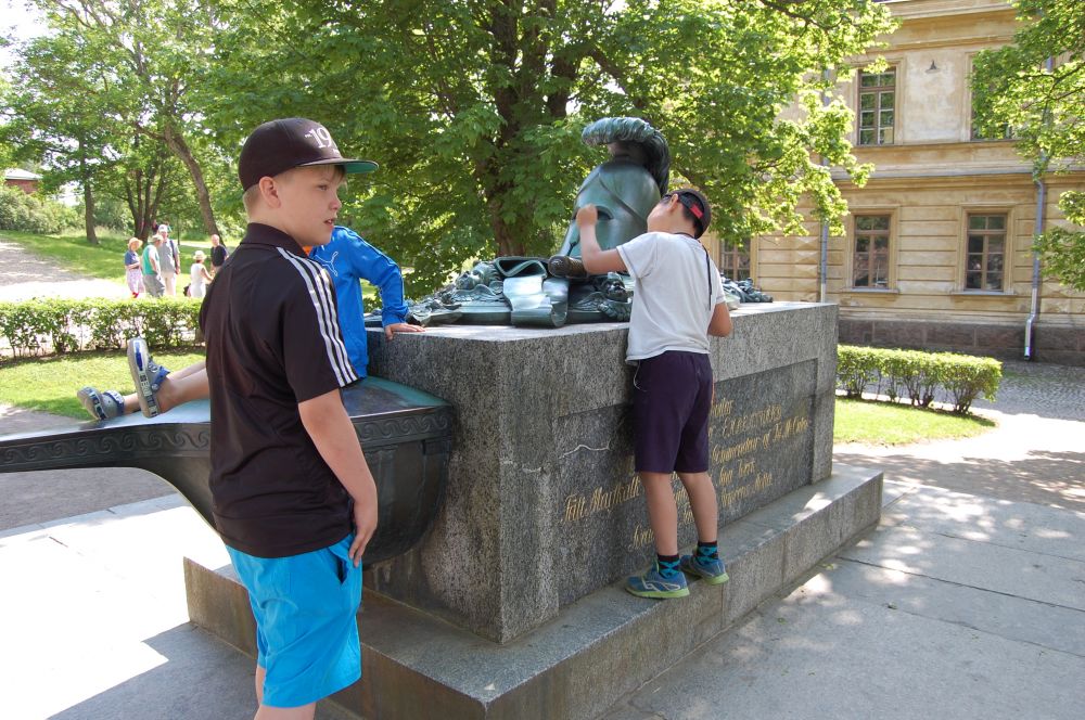 今年七月上旬全家及岳父母坐轮渡,从赫尔辛基之芬兰堡游玩。轮渡大约装100至200人,20分钟不到即可到达芬兰堡。上岸后我们问导游去哪里吃饭,在她的建议下我们选了一家前往。位置僻静,临海而建,暂时还没有顾客。菜不便宜,但是样式和口味非常不错。 午饭之后,我们沿着大路继续前行,临海的一边有防护城墙,墙上有洞,用于射击。城墙分好几层,有完整的,有断断续续而又错落有致的,材料都是有大块的石料垒砌而成。除此之外,还有砖制或石制的房子,两外还有教堂一所,当天还有人在举行婚礼。行走在里面很开阔,建筑物,石墙之间的距离很大,也有整块的草坪。有很多人在才地上picnic,还有人放风筝。有些从大海延伸至岸边的礁石裸露在阳光下,大人和孩子们在里面尽情玩耍。当天的风和浪痘痕大。