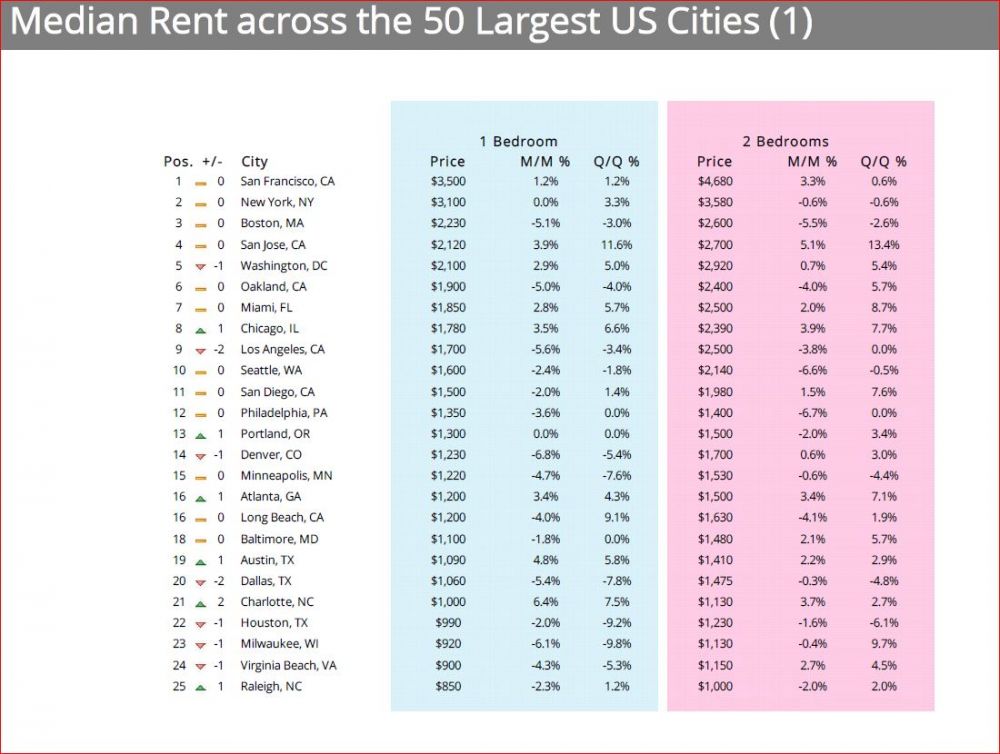其一房一厅的租金为$3100,屈居于旧金山排名第二。