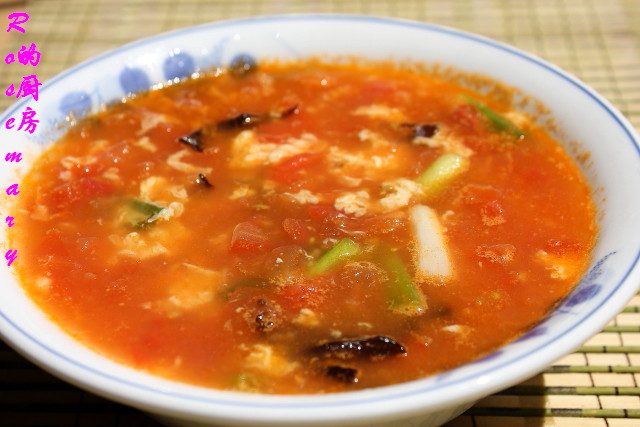 用番茄,木耳,葱,鸡蛋煮好的酸汤