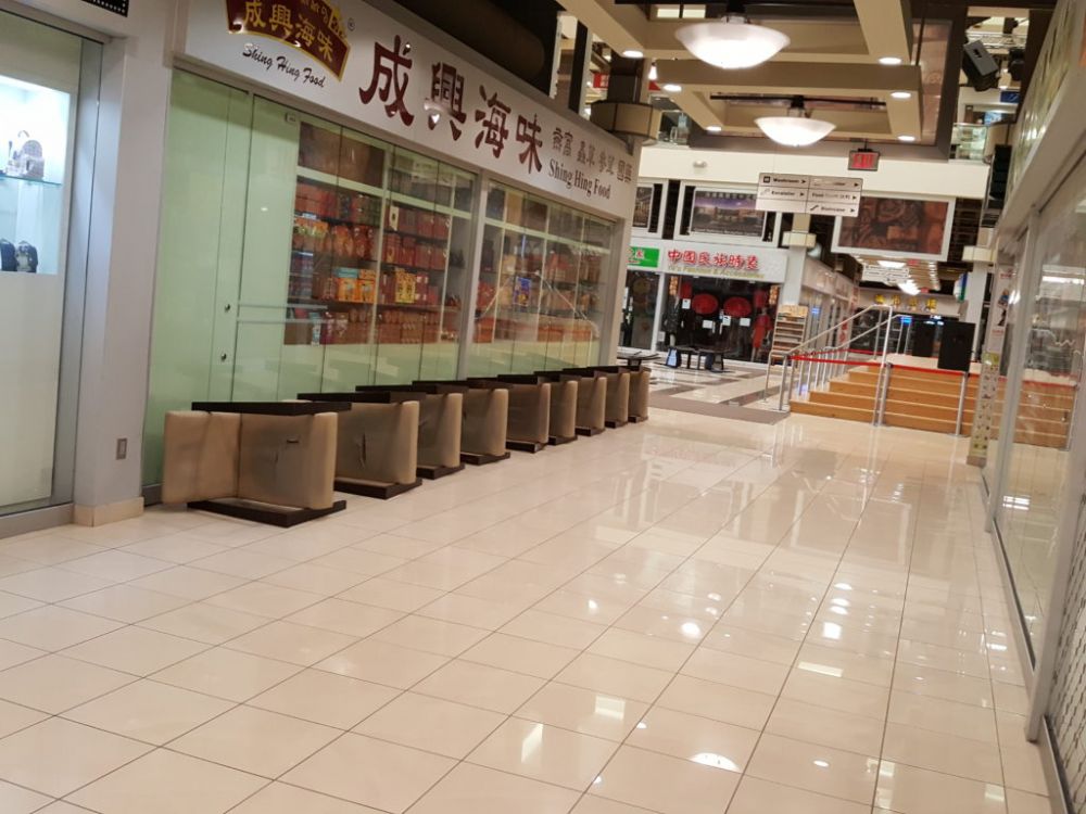 (锦绣中华商场:疫情期间把椅子倒放,避免闲人在商场逗留)