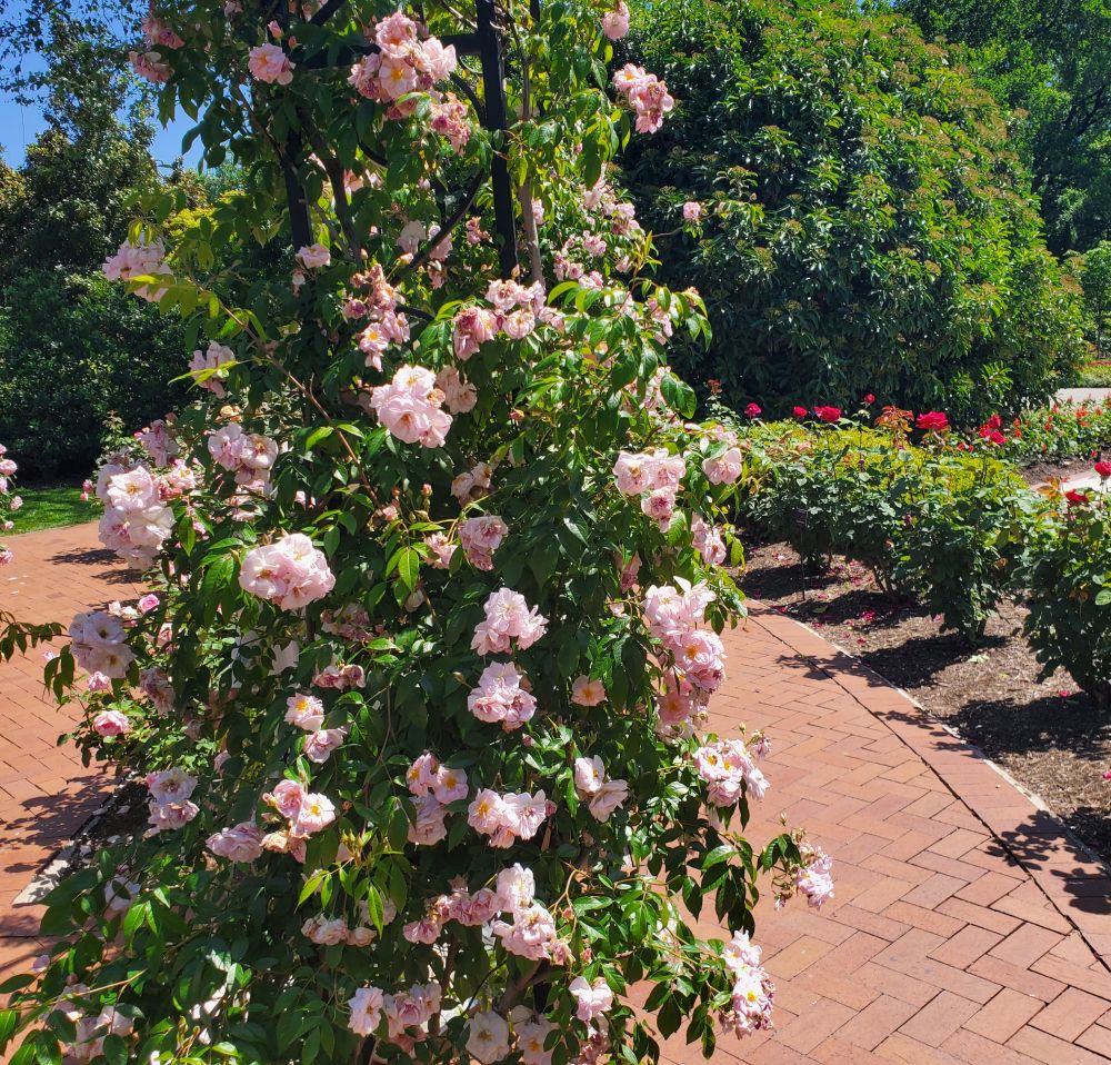 玫瑰花架,很多人在这里拍照,俺也自拍很多张。