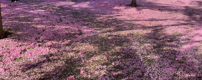 春风春雨后,樱花落满地。