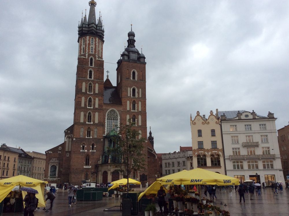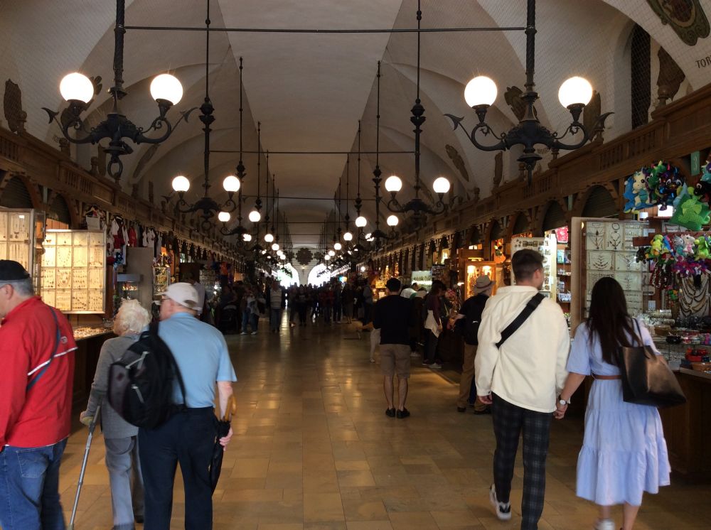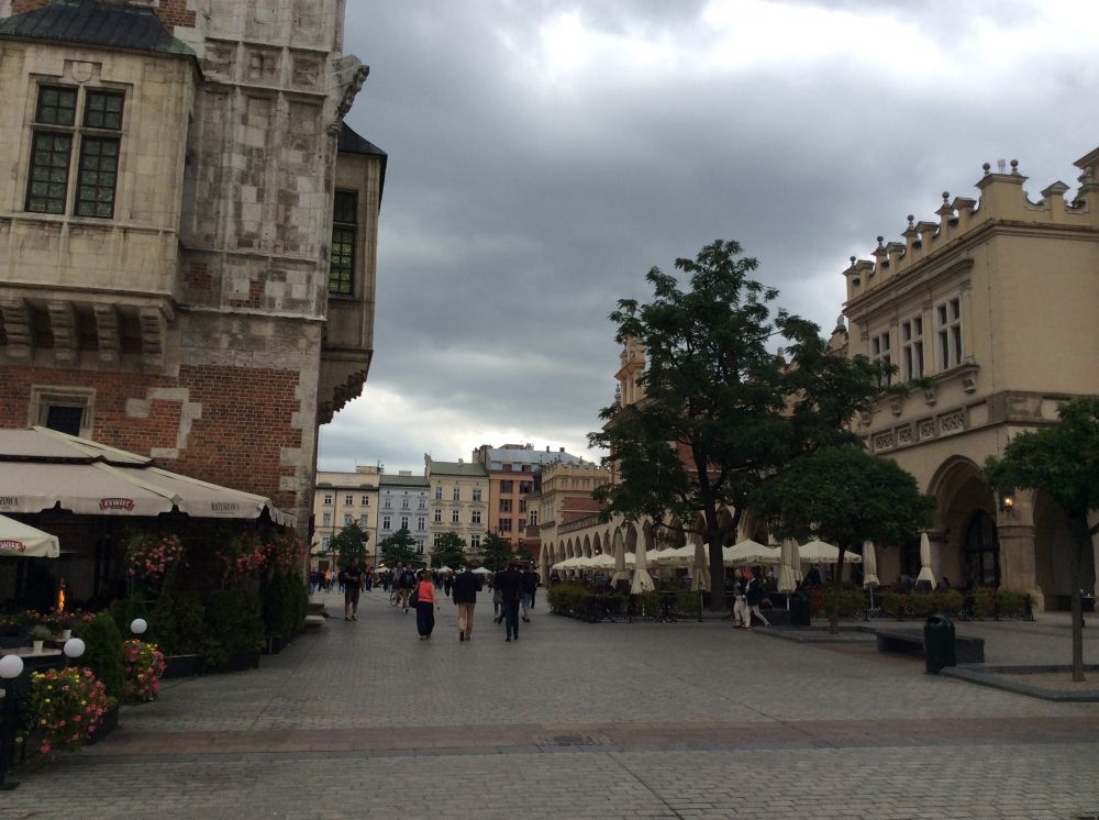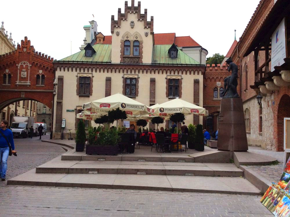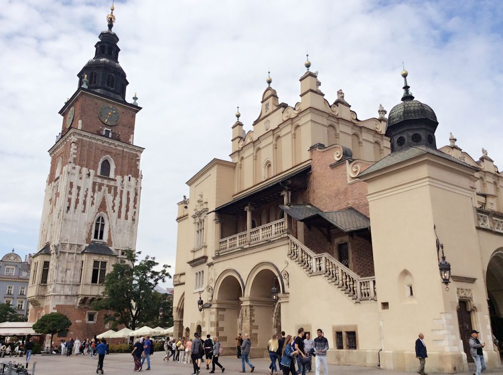 克拉科夫的中央广场是欧洲第三大广场。正对的建筑是著名的纺织会馆,现在有人称之为卖布堂。文艺复兴时期的建筑,当时欧洲最重要的国际贸易中心,来自东方的香料、皮革等物品和克拉科夫及欧洲生产的纺织品、铅和盐进行交易。现在这里的一层仍是市场,但卖的是旅游纪念品。