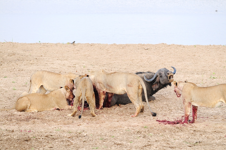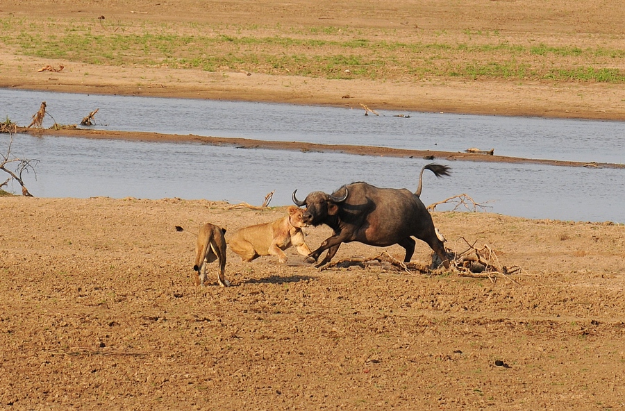 事后我问向导,多久才能见到狮子群和野牛遭遇的场景。他说很难讲,类似这样完整的扑杀过程也许一年,也许几年才能在白天见到一次。他们通常都是在事发之后找到扑杀地点, 因为一但狮子和非洲野狗扑杀到其他动物,秃鹰都会在上空盘旋,这是几乎天天都发生的。