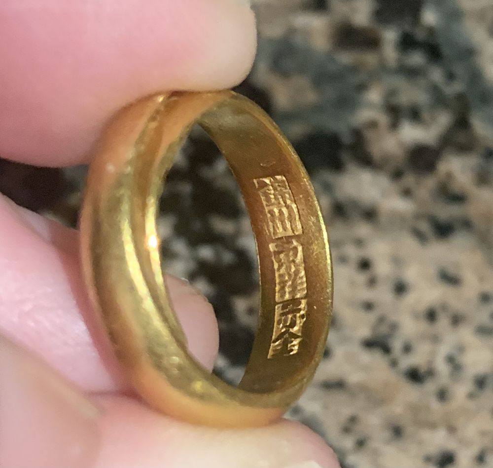 这个戒子不知道是什么时候产的。上个世纪七十年代,我太太的姥爷传给了我的岳父。那时候我和我太太还不认识。九十年代初,我岳父给了我。我也几乎没戴。别人告诉我这叫" 泥鳅背“。戒子的背面刻有 ” 锦州 东祥 赤金“ 的字样。不知道锦州现在是否还有东祥珠宝行。赤金表明是24K的。我对其金含量毫无疑问,因为那个年代没有假货。今天早晨我好奇。用微量天平一秤:8克。我太太一直说是4克的。称完重量后蛮有收获感的。人都说” 触景生情,物是人非“。 其实, 往往是” 人非, 物也非“。亲人离世后,老房子往往也逐渐卖掉了,老家具或给人了,或扔掉了。唯有家传的金银首饰总留着,一是值钱,二是不占空间。当我们偶尔翻腾出这些老首饰,把它们檫亮时,仿佛逝去多年,渐渐遗忘的亲人面孔也亮了起来。就像今天,当我秤完那枚纯金戒子的重量时,真想对我太太的姥爷说一声” 谢谢你,姥爷“。可惜,他已经去世20年了。