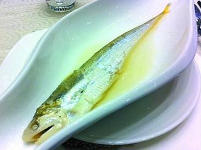 这道菜外表平平无奇,内里大有乾坤,做法十分不简单。首先要将刀鱼的整骨取出,并且不能破坏鱼的外形。然后再在鱼腹中填入八宝:将猪肉丁、火腿丁、香菇丁、虾仁、笋丁、蛋糕丁和青豆,上锅蒸熟。刀鱼肉质细嫩、鲜美,腹中的八宝多料多味,香鲜油润,是一道不可多得的美食。