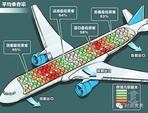 空难中10%是摔死的,90%的是烧死和烟熏死的。如果飞机起火且你活着,不顾一切往远处跑!不过如果不使用防冲击姿势,你已经撞晕了。不系安全带你已经死了。