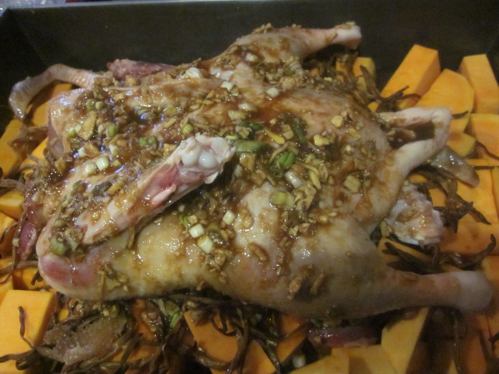 当归在粤菜中常用,多在补汤,以前母亲多用当归红枣炖鸡,那味道很开胃口,很喜欢那香味,我平时炖鸡,羊和鹿都用当归。在NJ是突然想用当归烧鸡,开始用整个当归,但不大出味,后就之砸碎,后果不错,经过多次试验,觉得扒鸡最好,但就是有点柴(刚想起可用鸡腿),鸭效果更好,那就有了当归扒鸭。