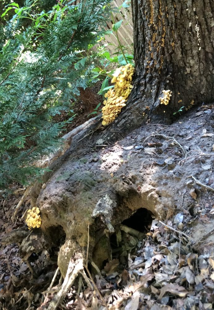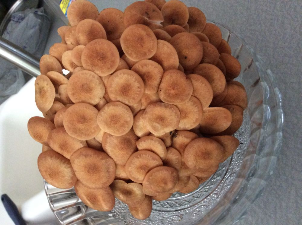搬到新家后,周围的环境还不很熟,没有打算去钻林子,找野姑了。两天下了一天大雨,今天早上到自家的草地转一转,看看能否将已长的草剪掉,刚出门见看到一簇久违的蜜菇,刚长出来的,很新鲜。后来发现屋后周围还有不少,以后应该不用钻这么多林子了。蜜菇新鲜很好吃,但冰了后口感就差多了,所以不能多采,这是经验之谈。