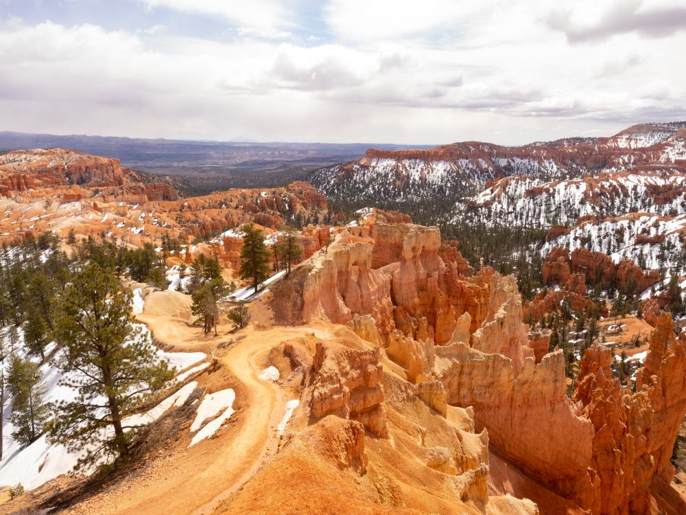 约11点到布莱斯(Bryce)峡谷国家公园,到游客中心才知4月上旬游布莱斯还是早了点,公园里还有积雪,大部分的步道和一半景观大道还没开,园区的shuttle也要4月12日才开始。