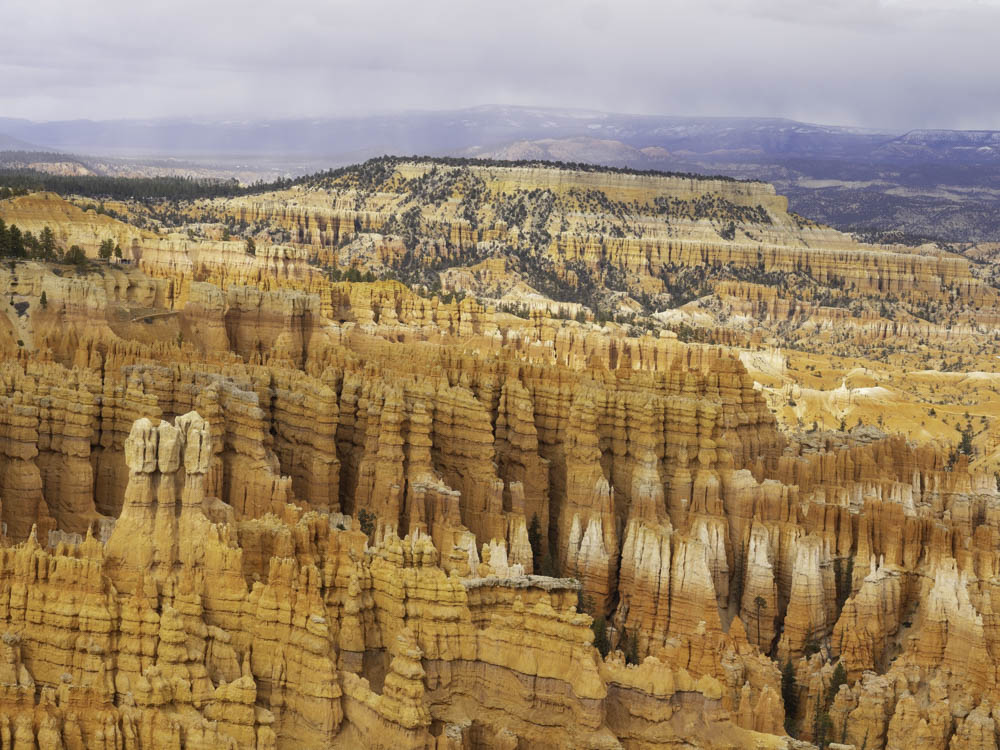 大约6点从Bryce point下来,天色变暗,随即下起了不小的雪,只好放弃景观大道回公园外的BW plus旅馆,在公园玩了刚好6个小时,走了11km, 累但意犹未尽。