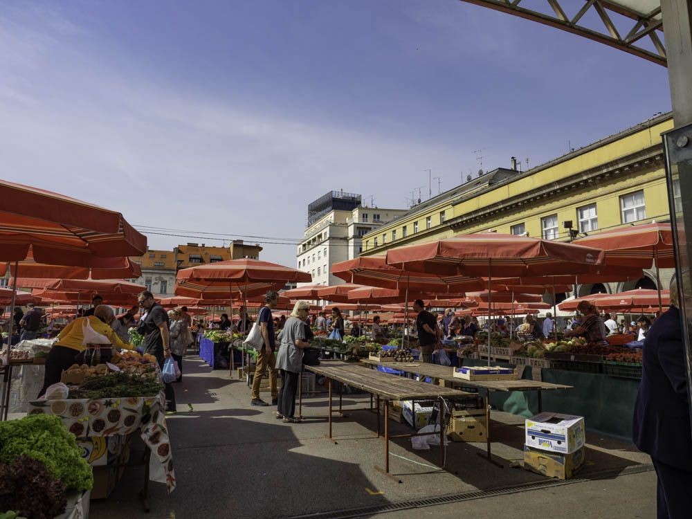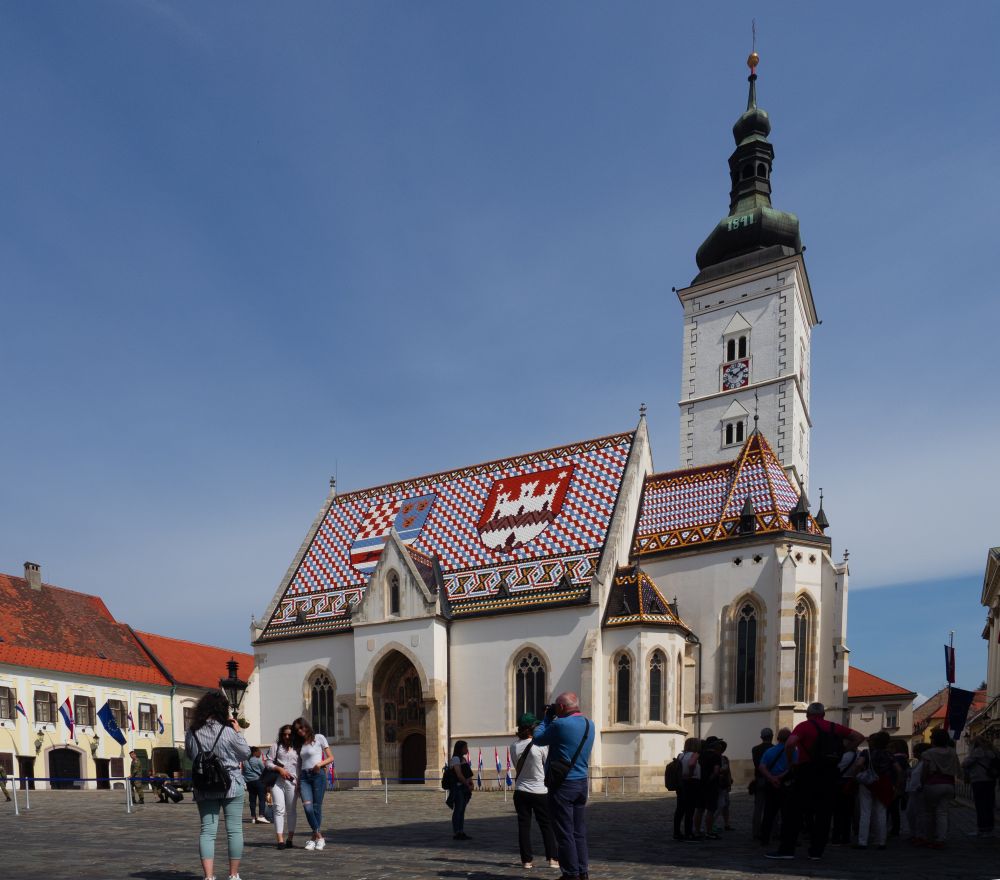 我们首先到螺旋型双塔的圣母玛利亚升天大教堂,这个大教堂高108米,是巴尔干地区最大的哥特式天主教堂, 也是整个克罗地亚最高的建筑,它是在原有教堂基础上修建的,完成于1217年,并由匈牙利和克罗地亚国王Andrew II祝圣,在1242年被蒙古人摧毁的几年后得以重建,大教堂在1880年的地震中严重受损,后经法德建筑师 Hermann Bolle 重新修复成现在的新哥特式建筑。教堂的双塔细长、雕刻相当繁复精湛,内部高耸的圆穹顶气势恢宏,雕花玻璃没有浮华的鲜艳,整个建筑有隽秀之美。那天是周日礼拜,本不对外开放,但善良宽厚的教徒同意我们进入教堂门口参观。游览30分钟后,随导游经 Dolac市场去圣马可教堂。红伞标志的 Dolac市场没有我期待的好,整体太小、太乱、也没有较好的摄影点,在这里还发生一件不愉快的事,团友T老师的钱包被盗,穿过市场也就几分钟的时间,拍照时才把背包背在后面,而且我们前前后后近30个人,居然没有发现,小偷技术可谓一流,万幸的是护照没丢,要不然就只能打道回府了。10多分钟就到圣马可教堂了,教堂是不对外开放的,教堂不大,最醒目的是屋顶装饰的彩色瓷砖,成了萨格勒布地标。圣马可教堂最早建于13世纪,其后又遭遇火灾、地震和一系列的重建,到1876年才重建修复成今天的样子,修复圣母玛利亚升天大教堂的建筑师 Hermann Bolle 也参与了圣马可教堂的重建。屋顶的彩色图案为两个臂章,左边是克罗地亚、斯拉沃尼亚(Slavonia)和达尔马提亚(Dalmatia)联合王国的臂章,而右边红底白教堂图案是萨格勒布城的臂章。现在萨格勒布城的标志色是蓝色, 而在18世纪红色是它的标志色。