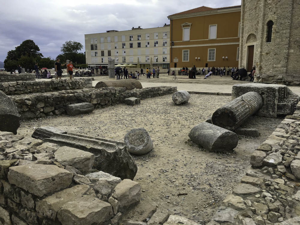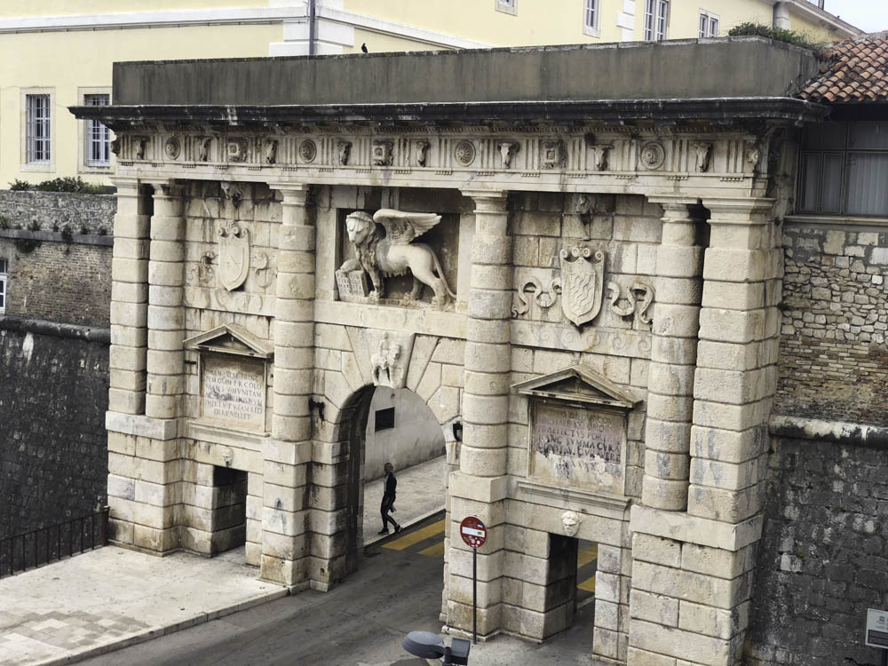 也许对扎达尔海边的向太阳致敬(Monument to the Sun)和海风琴(Sea Organ)期望太高,难免会失望,这个直径10米的太阳能圆板可能在太阳下或夜晚发光时,能有震撼效果,可当时天色阴暗;海风琴只是嗡嗡作声,未觉旋律之美,这两个现代的视觉和听觉艺术可能更需要我们用心或心情去体念,浮躁不得。扎达尔其实是克罗地亚最古老的城市,人类活动可追溯到石器时期后期,以及印欧史前的古地中海人,公元前9世纪伊利里亚人开始在此定居。从古罗马后期到中世纪以及19世纪,扎达尔频繁易主,先后被罗马帝国、拜占庭、加洛林王朝、克罗地亚王国、威尼斯王国、匈牙利王朝、法兰西和奥地利帝国统治,扎达尔一直是拜占庭统治时期达尔马提亚的首都,它也是威尼斯王朝的重要要塞,是当时的行政和文化中心,确保了威尼斯人在亚德里亚贸易畅通,为此它也深受文艺复兴的影响,产生了很多重要的文艺复兴时期的雕塑家、画家和作家。扎达尔城西的陆之门(land gate)是1543年威尼斯人修建的,门楣中央有翅膀的圣马可石狮是威尼斯共和国的象征,中间大拱门是凯旋门为车马通道,两边有小门为行人通行,它被认为是达尔马提亚最好的文艺复兴纪念碑。城门、城墙以及周围很深的壕沟使得它成为威尼斯共和国最大的防御城堡,在与奥斯曼帝国两百多年的征战中,从未被占领。在近代20世纪初曾被意大利统治,二战后并入南斯拉夫;1991-1993年,扎达尔遭受塞尔维亚武装攻击,直到1995年南斯拉夫战争结束才恢复和平。走在这个古城的主街上,踏着不知经过多少岁月磨砺光滑的石板路,两边虽是鳞次栉比的商店,一排现代气息,但抬眼便见石头的方尖塔、教堂、还有街边保留的古城遗址的残恒断壁,无时不在提醒你这是一个比罗马还老的古城!走过扎达尔,好像就更了解巴尔干,扎达尔的历史其实也是巴尔干半岛历史的缩影。