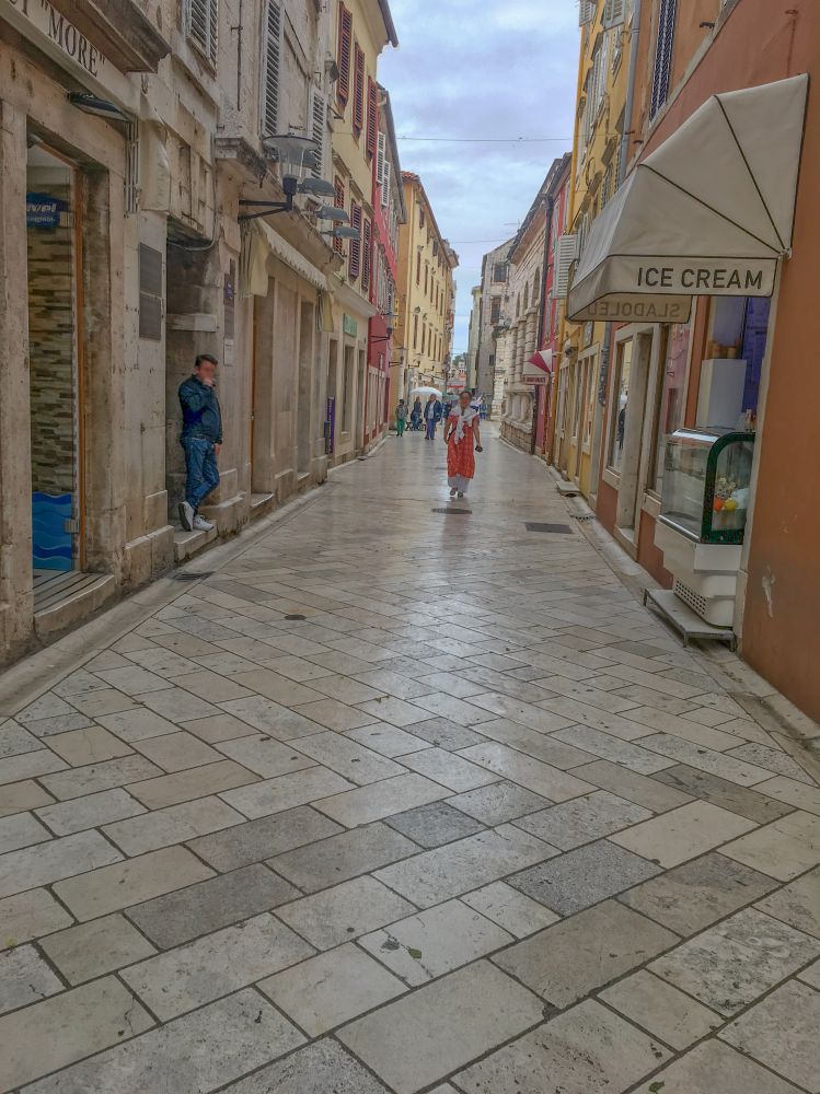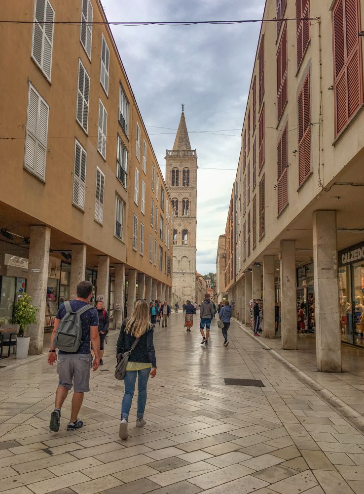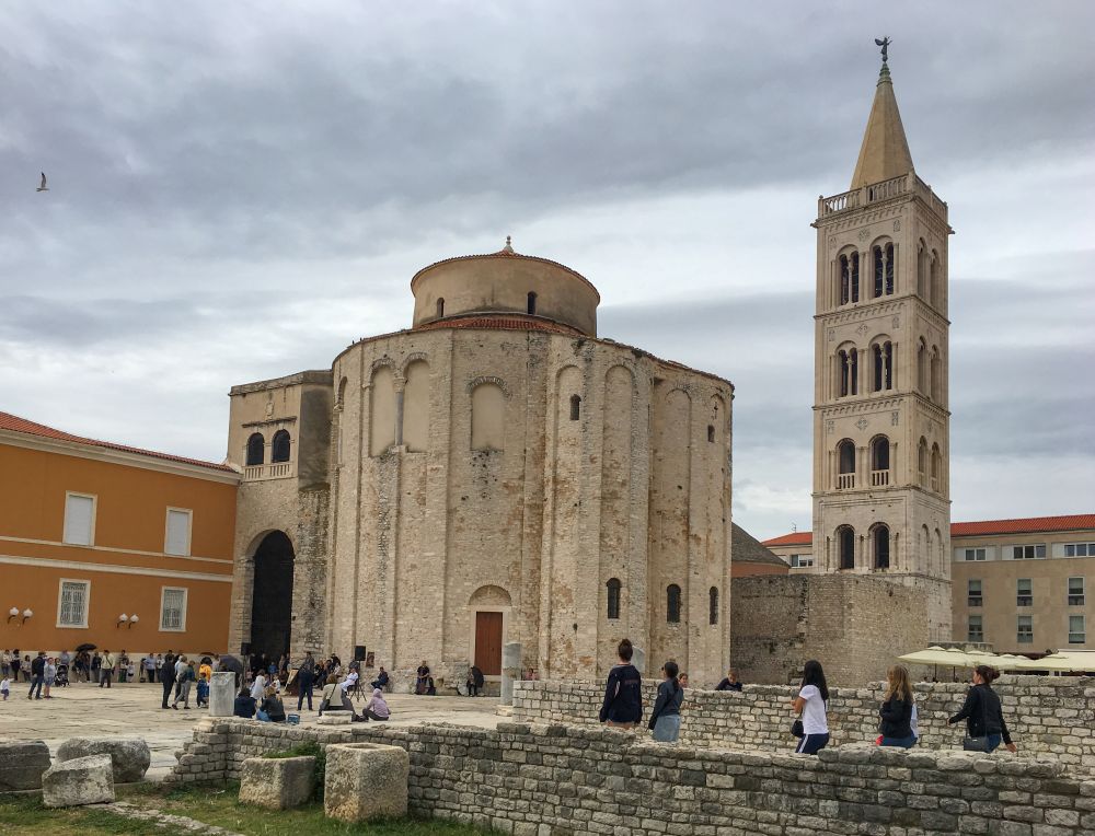 从圣马可教堂往南走几分钟就是洛特什察克塔(Lotrscak Tower), 这是萨格勒布城的瞭望塔,上塔要从一个小礼品店里进去,但要下午1点才开门,只得作罢。旁边还有想打卡的失恋博物馆和连接上下城世界上最“短”的缆车。然后沿着上下城边界的步道向东几分钟即到位于下城区的耶拉契奇广场(Ban Jelacic square), 这里除了一个耶拉契奇的雕像,没有多少可看,不过在广场旁穿梭的、从1910年就开始运营的电车,尤其是城市标志蓝的有轨电车滑过时,无疑是一道风景。午饭后,上车继续南行到克罗地亚的第五大城市扎达尔(Zadar)。