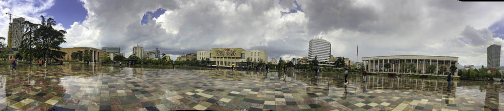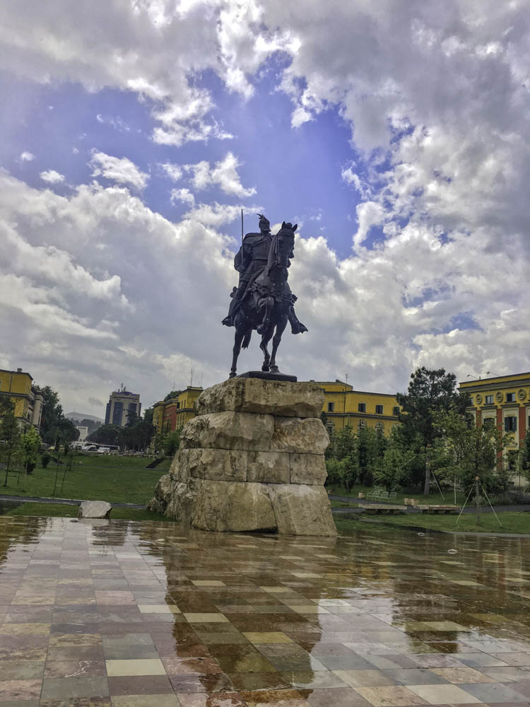 一早上车去阿尔巴尼亚首都地拉那,地拉那有点像我们90年代中期的水平,甚至更早些,街上还有警察指挥交通;街上的车倒不错,奔驰、大众为主,但都像旧车,据说很多在欧洲偷的车,在这里上个牌照就可用。人还是比较友好,在去地拉那路上一加油站,一老头与我们正在拍照的大妈打招呼并说“beautiful”,另一团友赶紧把大妈拉走,担心被骗,搞得阿族大爷一脸尴尬、不解,出来是碰见小偷,也有人被盗,但毕竟是少数,巴尔干有些地区稍落后一点,但整体素质还是不低,我们在马其顿奥赫里德街上,遇到不少小学生主动给我们打招呼,其实出来旅游,小心安全是第一位的,但还是应该持开放的态度,我们旅游的不仅是自然、历史文化,也是社会人文;有不少人旅游时喜欢住民宿,就是想近距离的了解感受真实的民间生活。到地拉那时正好下大雨,我们首先去国家历史博物馆, 馆藏三层,不大,东西不多,分为古代、中世纪、近代建国、二战...几个馆,不过大部分的介绍、展品没有配英文。