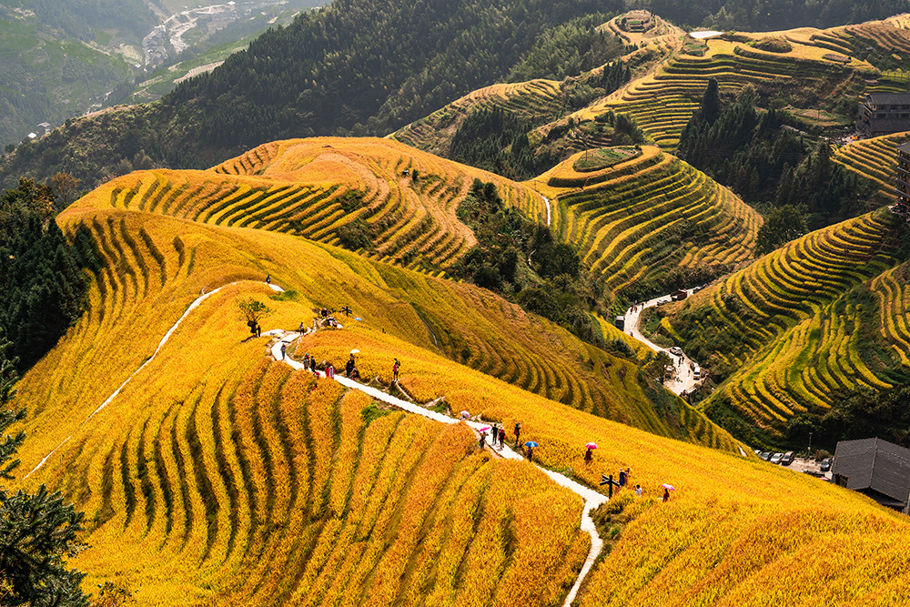 龙脊梯田——我们去了金坑和太平,坐缆车上金坑,租车上太平,金坑最大,但个人觉得太平更漂亮。