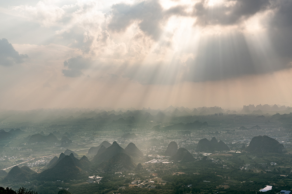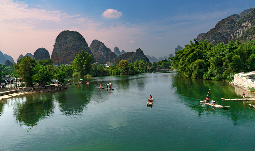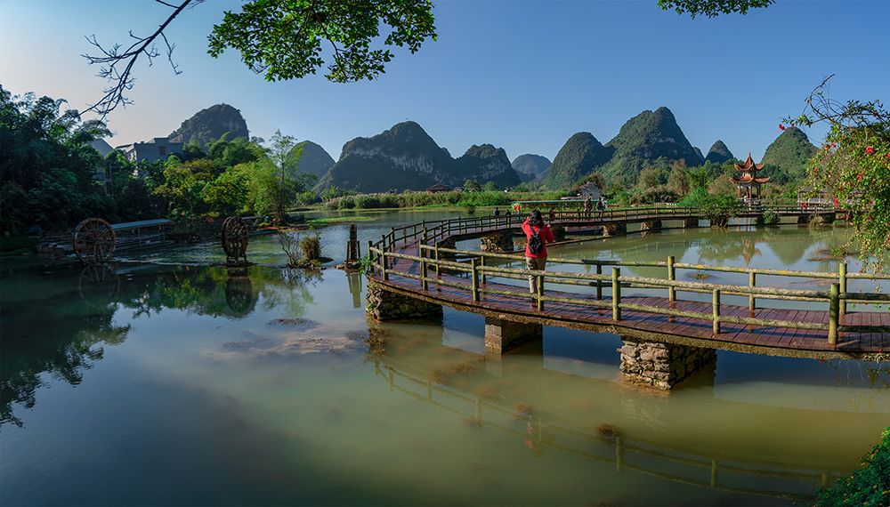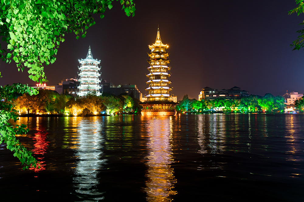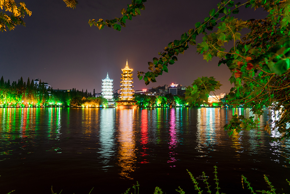 从山水甲天下的桂林开始,我们坐车上尧山,这是桂林最高的山峰,从山上可以一览丰富的喀什特地貌,那天晴见多云,让我们领略了峰林间的桂林,在耶稣光下的梦幻景色。夜游两江四湖环城水系最漂亮的日月双塔(金银塔),漫步杉湖边,双塔流光溢彩、光影争辉,如一副美丽的夜景画卷。