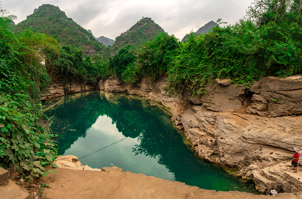 都安天窗没有我想象的壮观,桃花水母天窗旁有一山可登高俯瞰,太累了没上,不过那天天气不好,很影响天窗的碧绿水色。