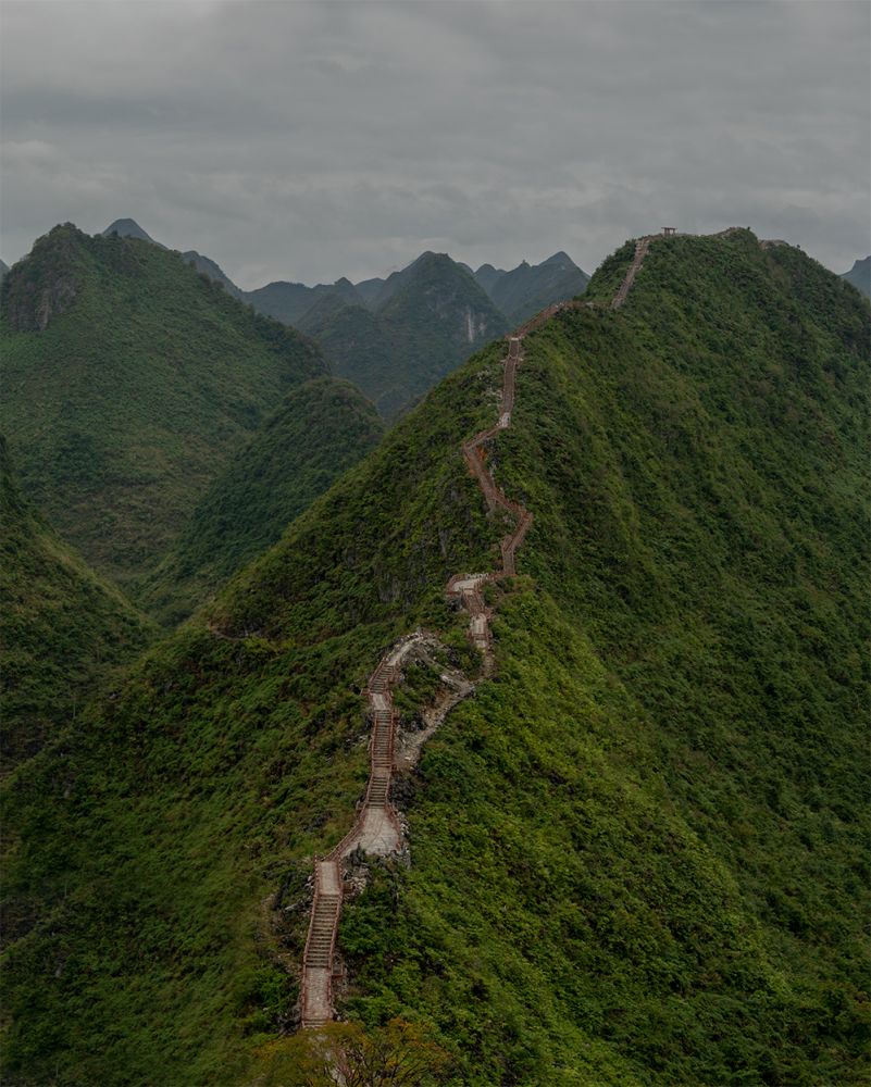 河池七百弄可谓一弄连一弄,风景不断,我们先上天下第一弄,又登千山万弄。广西旅游对体力要求还是较高,平均每天步行近10公里,山虽不高,但都比较陡,路也不好,我们这次好些山峰都没路,只是登山或摄影爱好者走出来的一些小道。登上千山万弄,四周是无尽起伏峰林,一片峰高洼深的山海奇观,极其壮观;山上还有一条很长的步道,我们时间不够,没有走,很可惜。离天下第一弄不远的天上人间,是一条沿着山脊的而建的石台阶山路,这条不到1.5公里龙脊步道随着山势起起伏伏,台阶忽上忽下,龙卷地、千山万壑连绵不断,真是天上仙境落人间的壮美风景线。