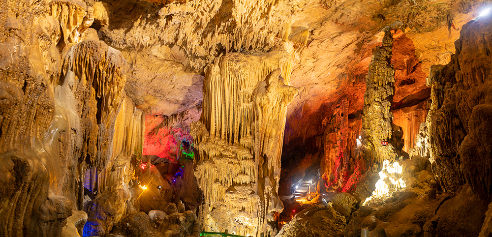 凤山为典型的喀斯特岩溶地貌, 有规模最大的三门海天窗群、万寿谷溶洞、还有一个建在开放式的溶洞天然桥里的地质博物馆。我们在凤山住了3晚,坐船游览三门海天窗和良弯河流上的同寿山水开放溶洞;在万寿谷溶洞,大自然的鬼斧神工造就了千姿百态钟乳石、石笋在灯光下色彩绚丽、晶莹剔透,不到2公里的溶洞我们足足走了3个小时。百乐坳的寿源云海因地理位置特别,四季早晚都可能看到云海,偏偏我们运气不佳,大雾,几乎什么都看不到。
