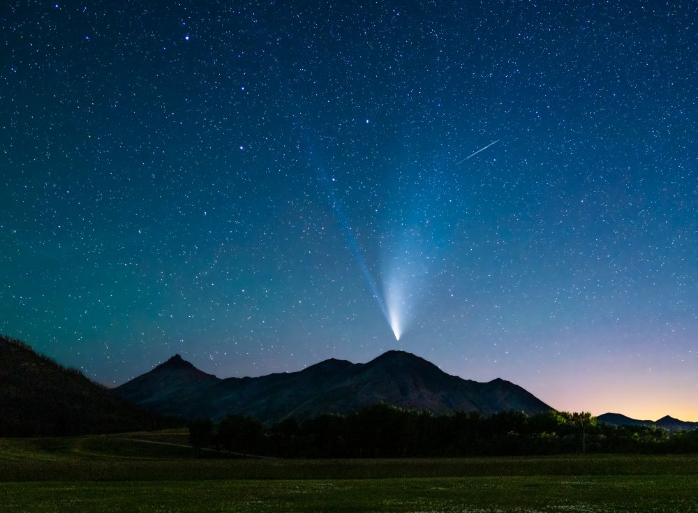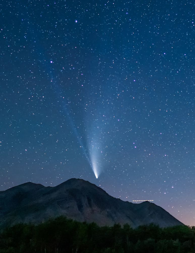 可能因COVID关得太久,又才解禁,这颗正在我们头上飞过的neowise 彗星,毫无疑问便成了大家外出摄影和夜游的题材,我也跟风去拍了一次,非常有幸跟随经验丰富的资深摄影师,他行前广泛查询天气,几易时间,最终一气呵成,在晴朗夜空下的山巅、平静如镜的湖上捕捉到这颗明亮的彗星,拍得手软!据说这是21世纪北半球最亮的彗星,下次接近地球要6800年后了,真是千载难逢,也难怪大家珍惜这次相遇。