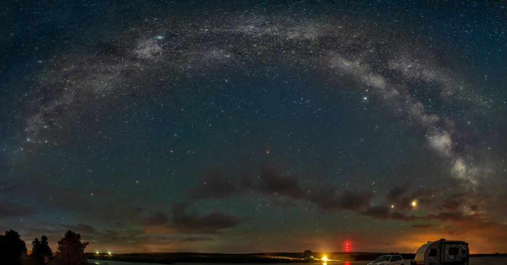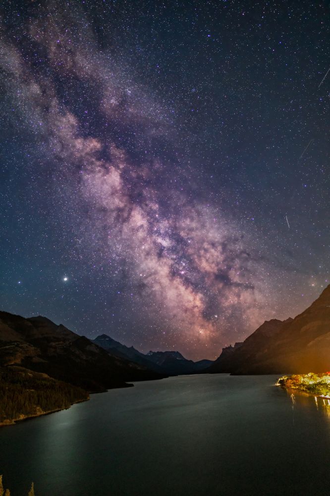 深夜在Waterton湖边看银心升起,银河又亮又清晰,绚丽夺目;凌晨登上Bear Humps观日出,朝霞似火,红透半边天。