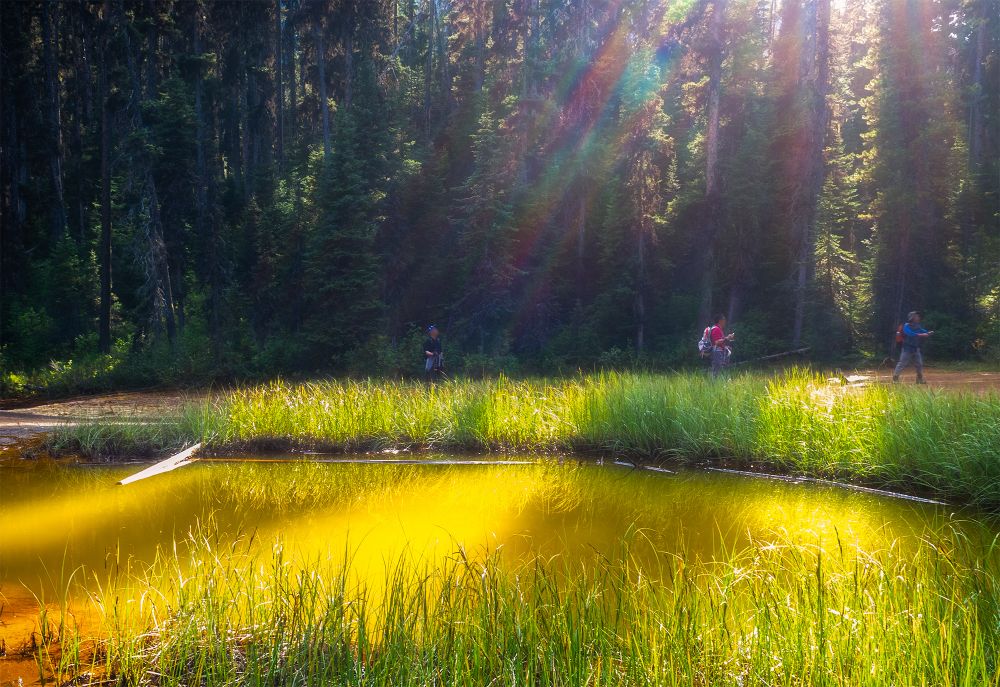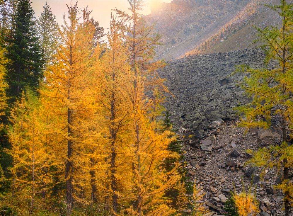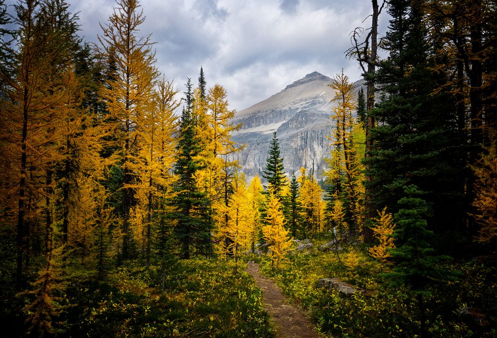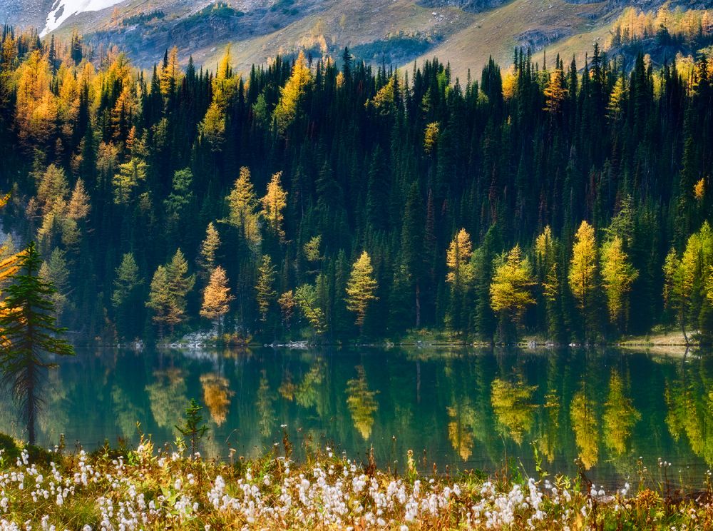 今年的露营似乎开启了登山模式,从几、十几公里到20公里,拔高也从3、5百米升到1千米!一次次战胜我的惰性和怯弱,为观落叶松更让我的远足登山上了一个台阶。9月18日爬到Taylor lake, 大家还不过瘾,午饭后又直奔o’brein lake,这里秋色更浓,金黄的落叶松散落山上、湖边,并对影在平静的湖面、一簇簇如蒲公英似的白绒花在金色的草地上衬得银光闪闪,真可谓一年好景,正是橙黄橘绿时!下山腿软,人人恨路长,可没想到这趟18公里,拔高749米的徒步还只是热身,第二天一觉起来,大家就只记得昨日的美景,又兴致勃勃地登城堡山的Rockbound lake, 这绝对是一条值得重游小道,穿过一片正黄的落叶松林就rockbound湖,继续上行到rockbound湖的观景点,眼及城堡山顶,第一次近距离感受城堡山的雄伟,成片落叶松、碧蓝rockbound湖和翡翠般的tower湖尽收眼底,如果再高些,tower湖可能会大点。快行下山,全程20.5公里,拔高1061米,8小时的行程感觉不比昨日辛苦????,没想到人的潜力还是很大哦????