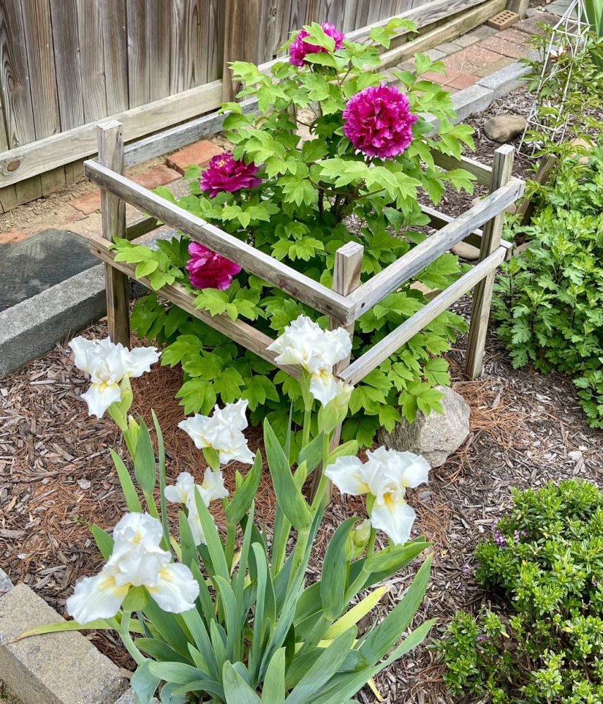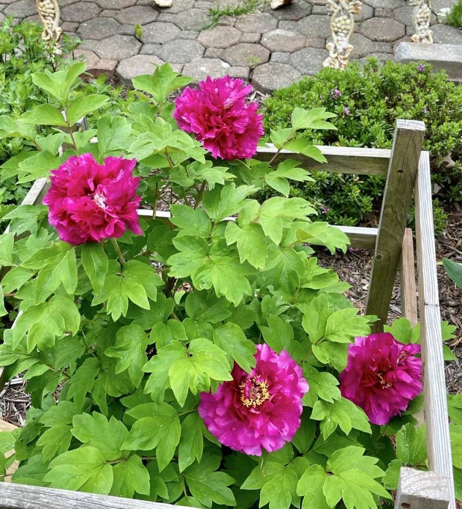 你的牡丹长得很好,那个木头栏杆过两年要拆掉,因为牡...