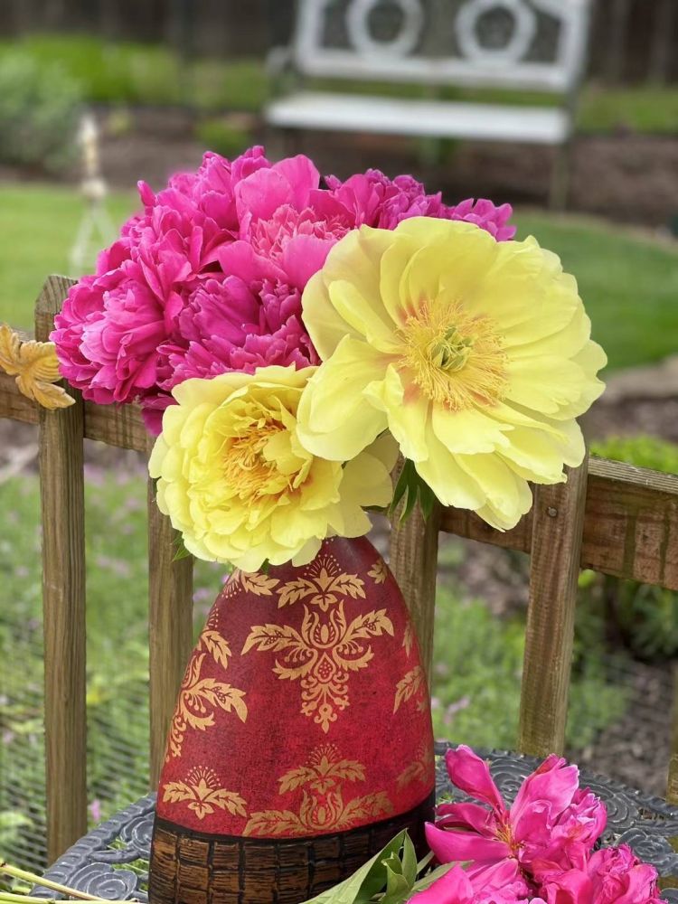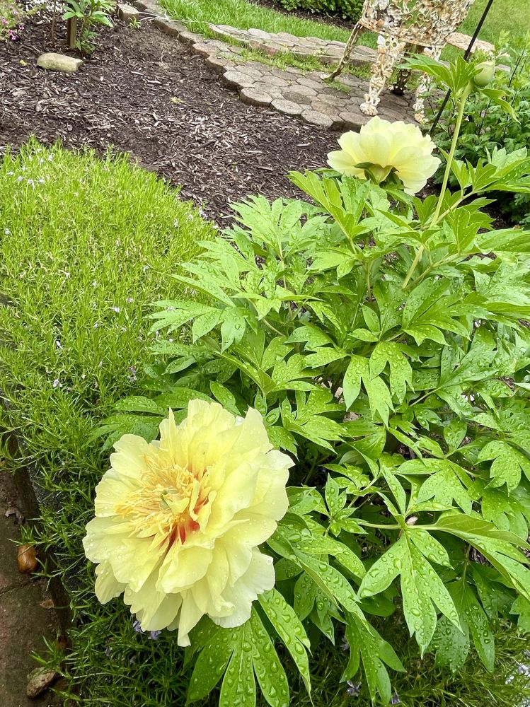 伊藤牡丹--Peony Itoh Bartzella 2023年春从Costco买的裸根苗,当年出了一个花苞被我掐了,今年是第一次开花,植株之大实在令人惊叹,花朵大而娇嫩也在意料之外。做瓶插花很吸睛。