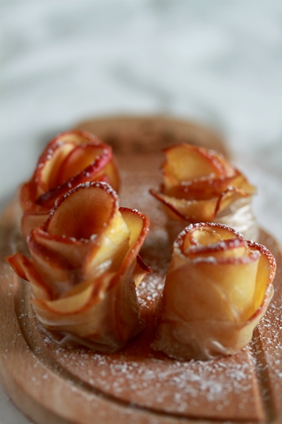 用米皮烤出的玫瑰好看好吃。估计用塔皮口感会更好。下次准备升级做出那样的苹果玫瑰派