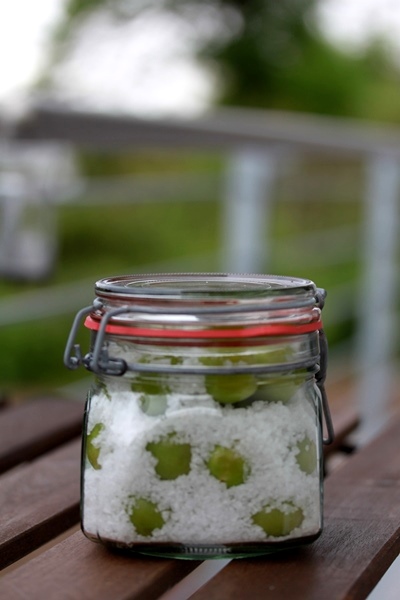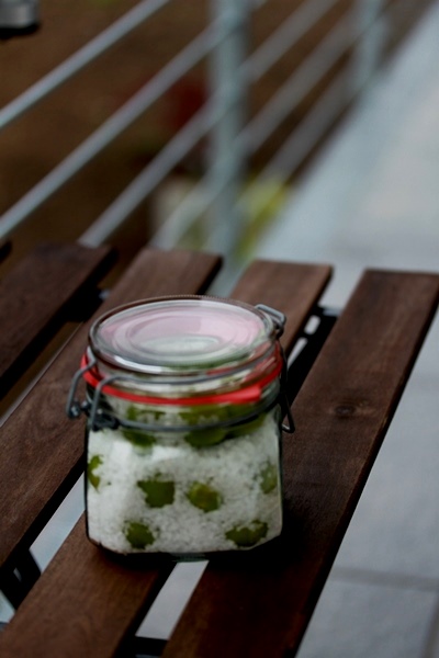 还按网上方子做了盐腌青梅, 青梅洗干净后放阴凉地方风干两天,然后找来密封的玻璃瓶,按一层粗盐一层青梅摆放,最后装满后密封好,等待四个月吧!可以泡水喝,又可以做酸梅排骨,酸梅鸭…