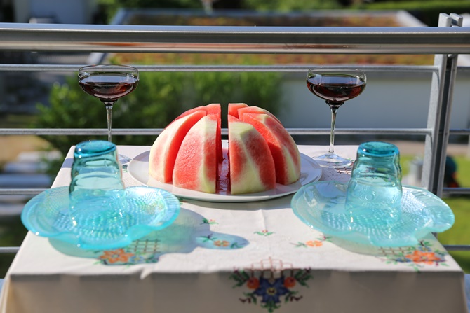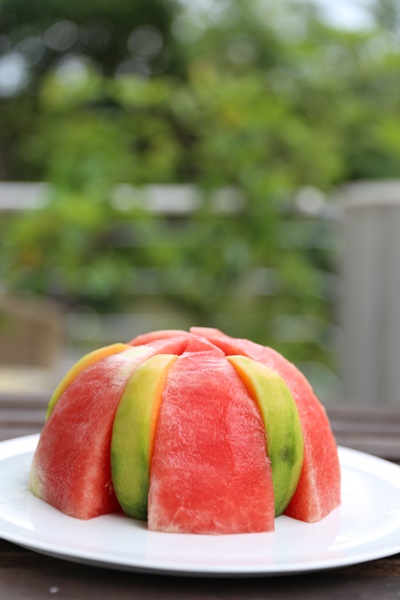 周末清晨起来把粥煮上。又开始玩啦,今天用西瓜布置餐桌