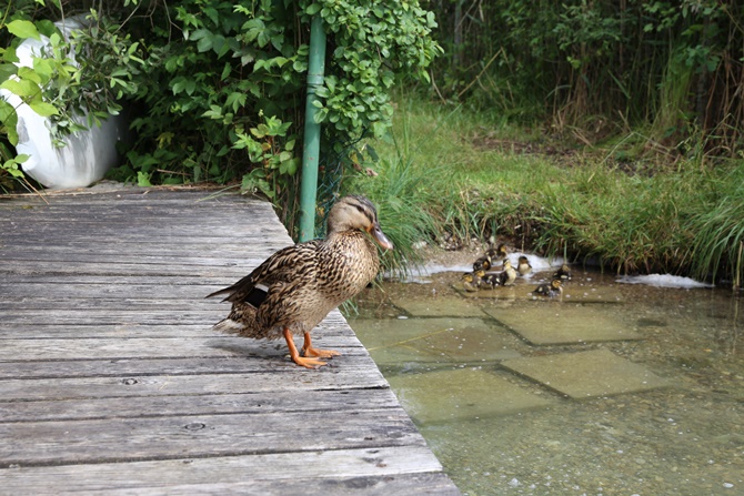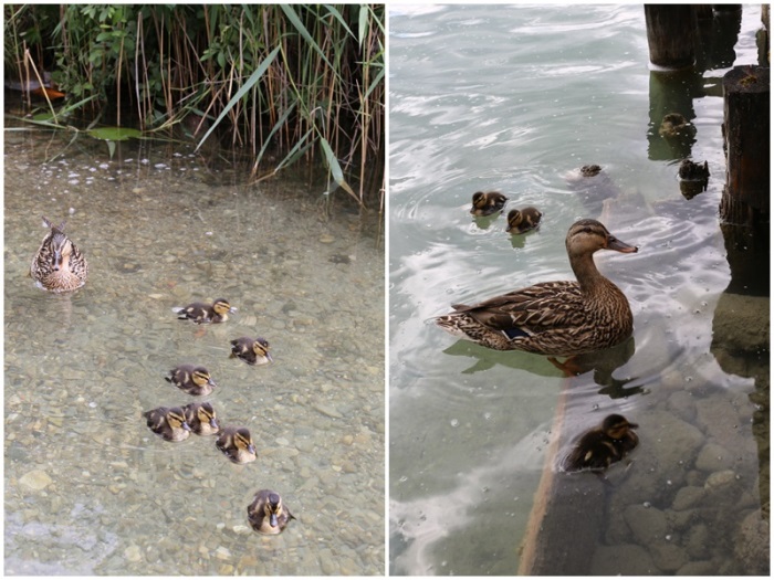 玩完了老公也起来了,俩人一起去游泳。每天游泳我包里会带干面包片,你不知道什么时候你会遇到鸭子,天鹅。今天遇到鸭妈妈和她的鸭宝宝,哇,点了一下11只,可以组成个足球队啦。