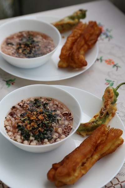 每人一碗杂粮粥,还有油条吃,吃货有吃就开心。