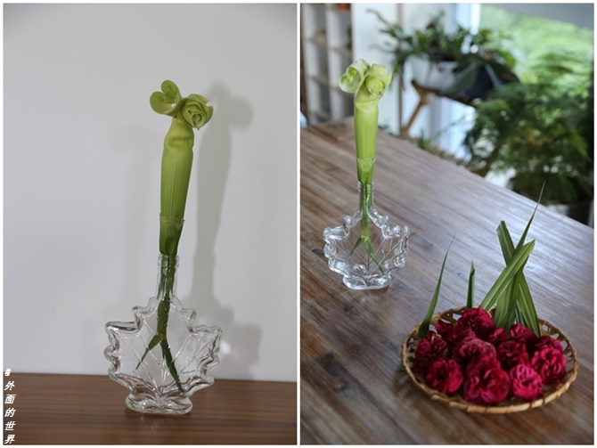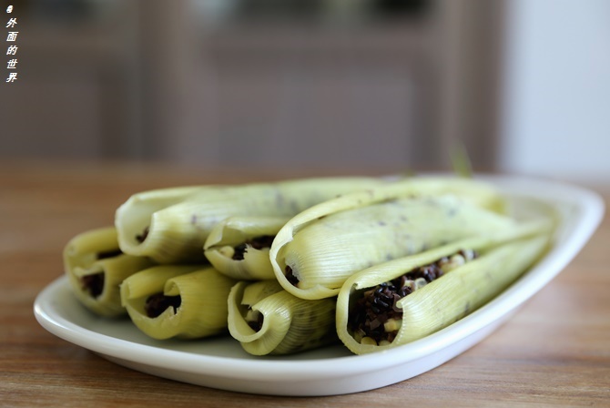 我原打算把玉米叶剪成圆的烧卖皮包烧卖。脑子里都想象出烧卖可爱的样子,可是新鲜的玉米叶没有韧劲,是脆的。一折就断。还是那句话:什么事只有做过才能懂得。