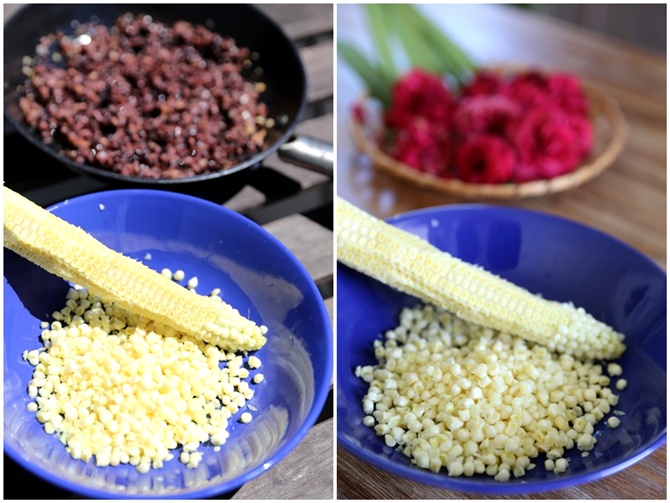 新鲜的玉米粒剥下,就是要吃玉米的鲜,所以玉米最后放入炒好的烧卖馅里。