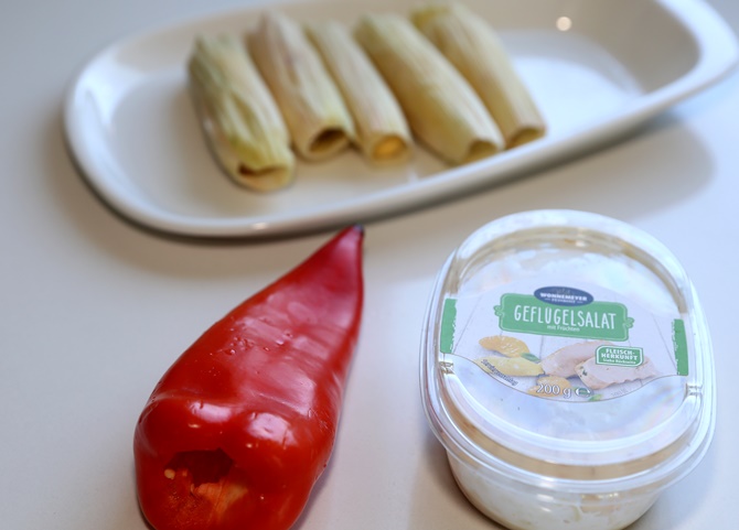 因为是"大餐" ,至少要有"大餐" 样,红椒用奶酪酱沙拉填入,一道养眼的头餐
